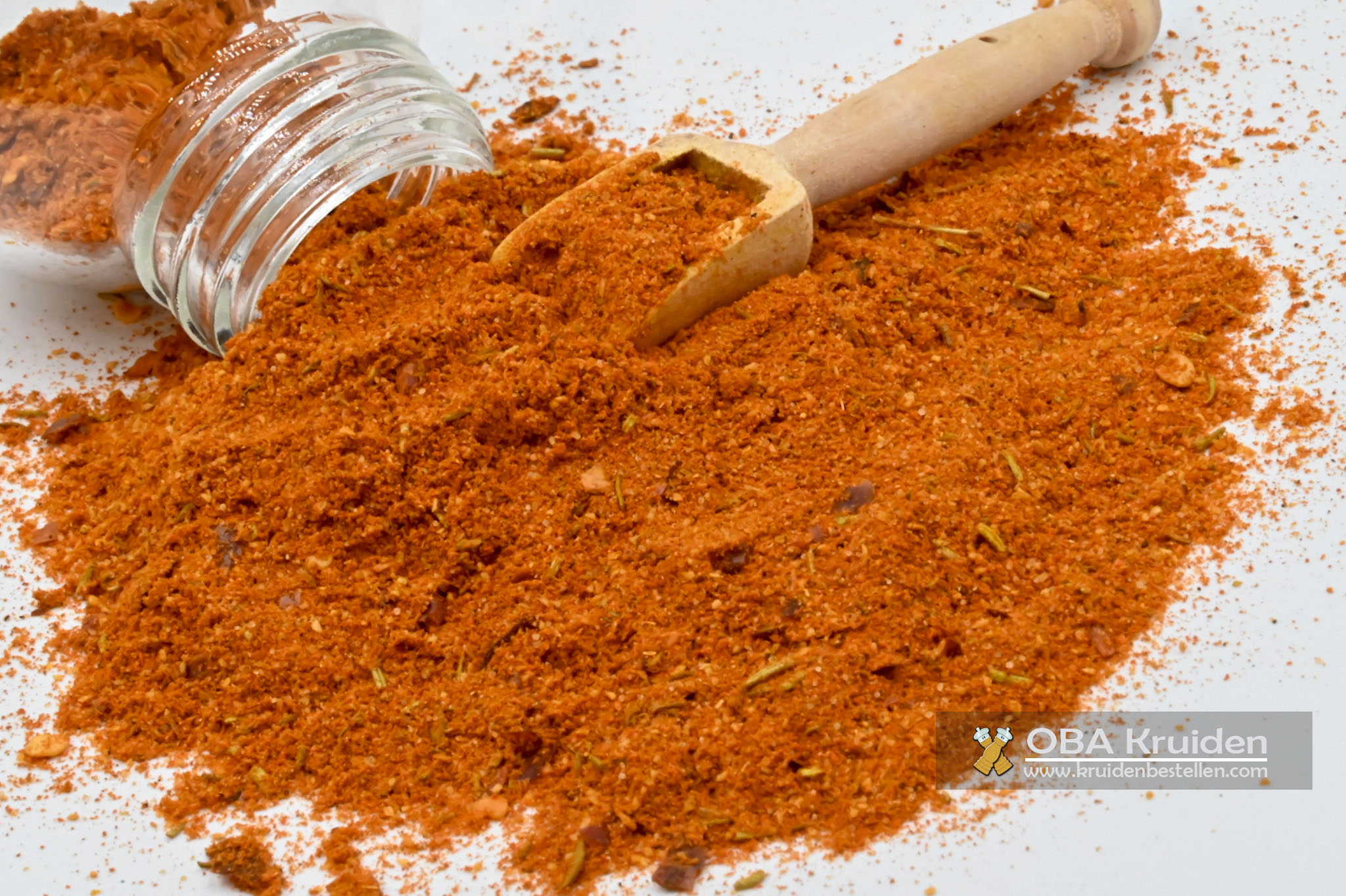 paprika, peper, komijn, koriander, curcuma, chillie, knoflook, mosterd, tijm, kaneel, foenegriek, gember, venkel, uien poeder, rozemarijn, nootmuskaat, piment, kruidnagel, zout.